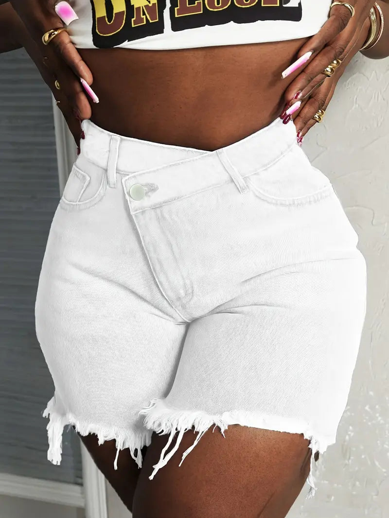 Crafted from soft, breathable denim with just the right amount of stretch, these shorts feature raw hems and distressed details for a high end edgy feel!
