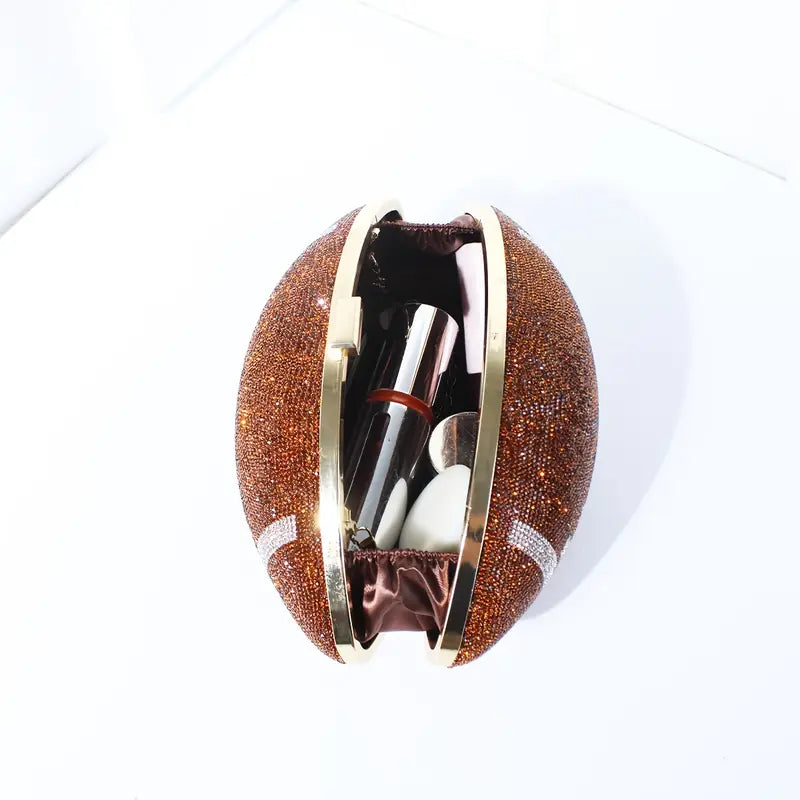 A playful twist, this clutch transforms football into a chic fashion statement. Crafted with a polished finish and luxe detailing, it’s the perfect balance of sporty edge and style.