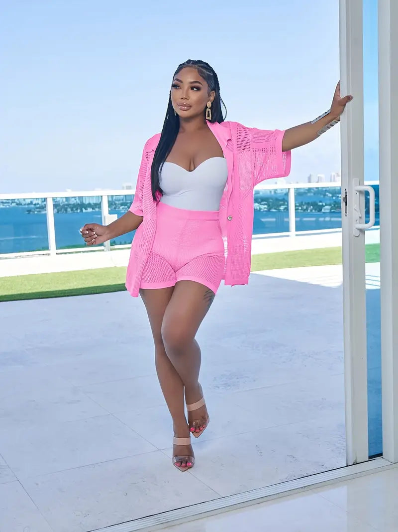 Endlessly versatile our knit shorts set is your vacay essential reimagined. Crafted from soft, breathable knit fabric with a luxe feel, this matching set pairs a relaxed fit top with high-waisted shorts for a look that’s as chic as it is comfortable!