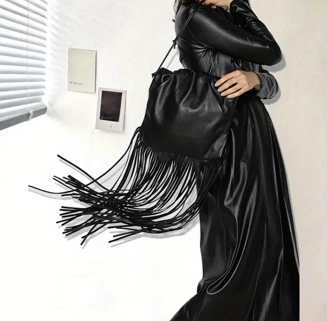 Everything is better in fashion when it’s dramatic! Add our luxe leather high fashion tassel handbag to your next trip!