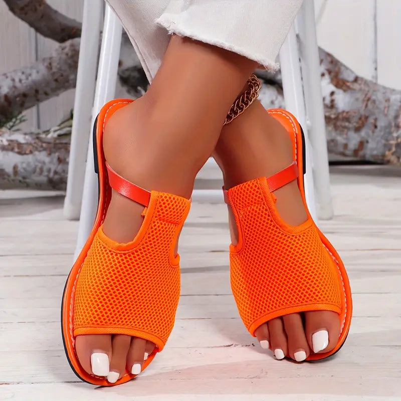 Stay cool and stylish with these breezy flats! Comfort with every step, add effortless flair to your beachwear, available in a orange tropical-inspired hue to perfectly match your summer wardrobe!