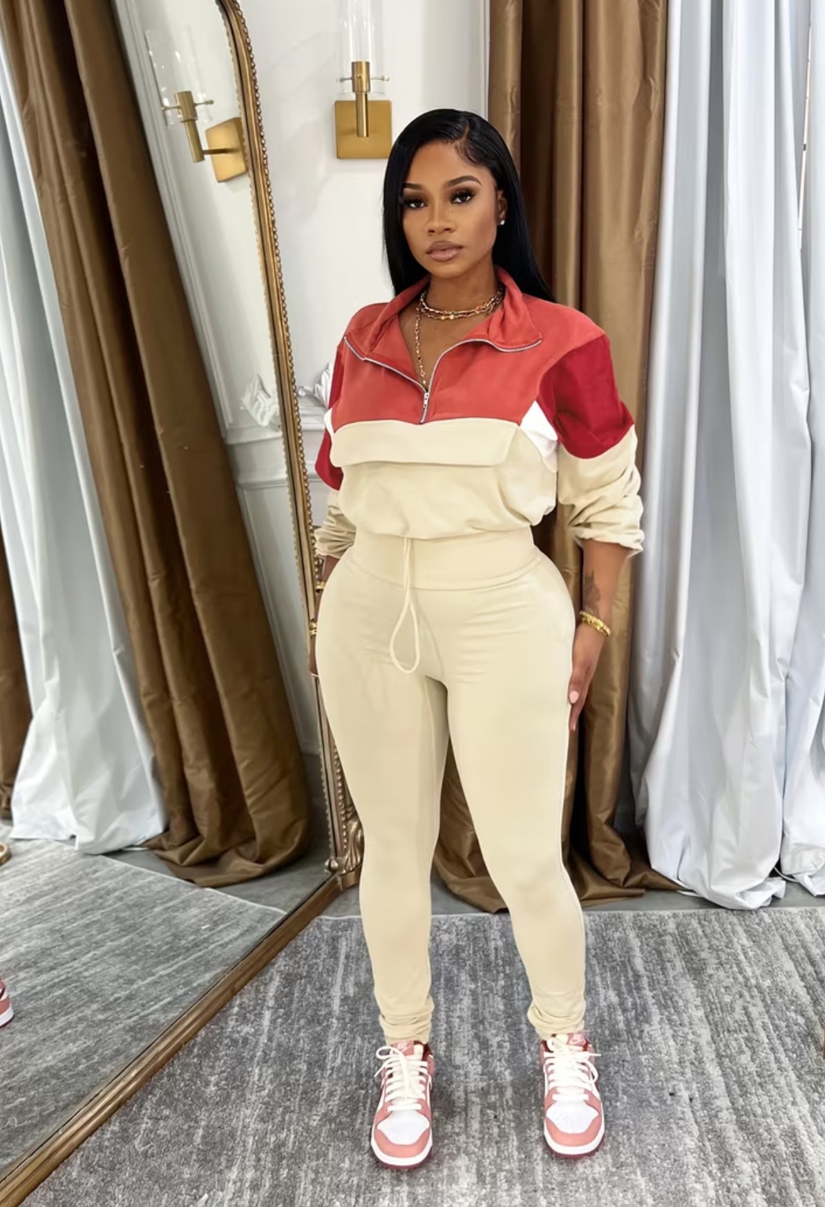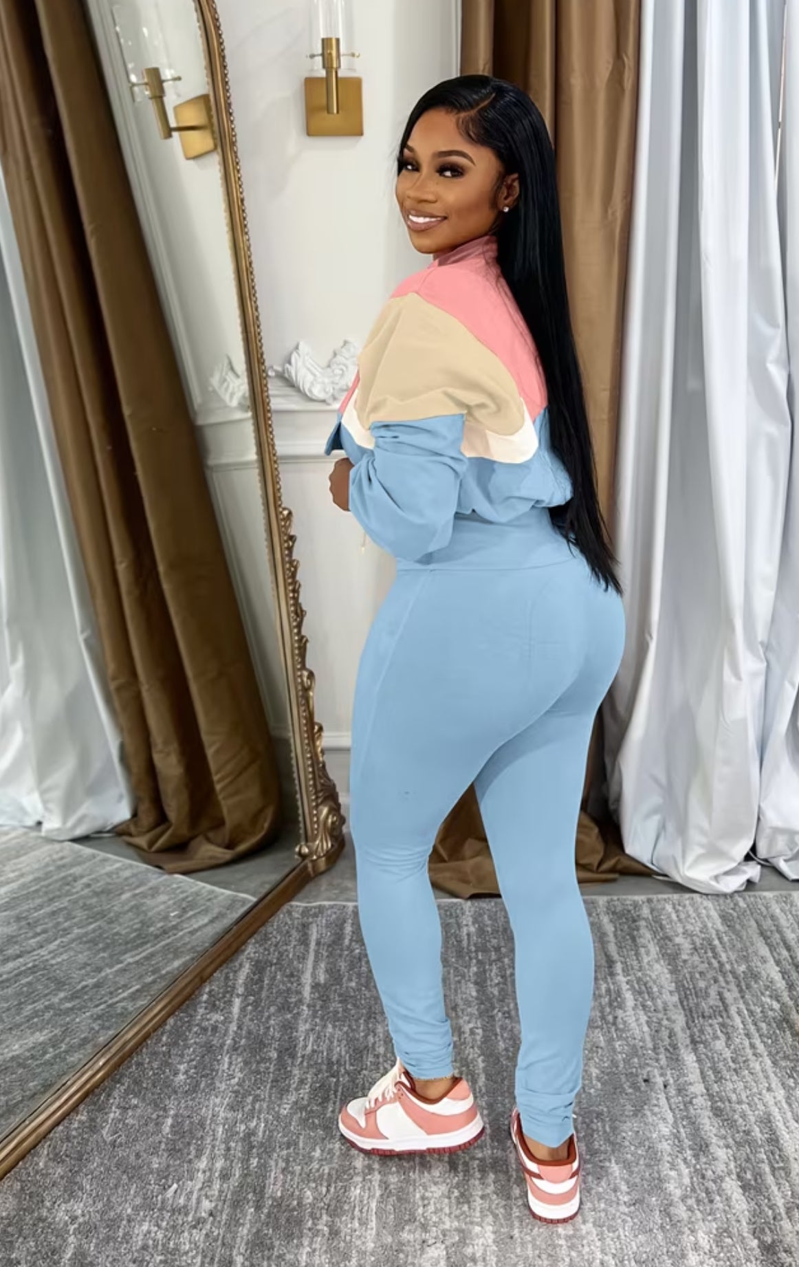 Make the most of this outfit, whether you’re running errands, dressing for the season, our at home our set is sure to bring good vibes! These colors blend so effortlessly, and beautifully for a perfect casual night look!